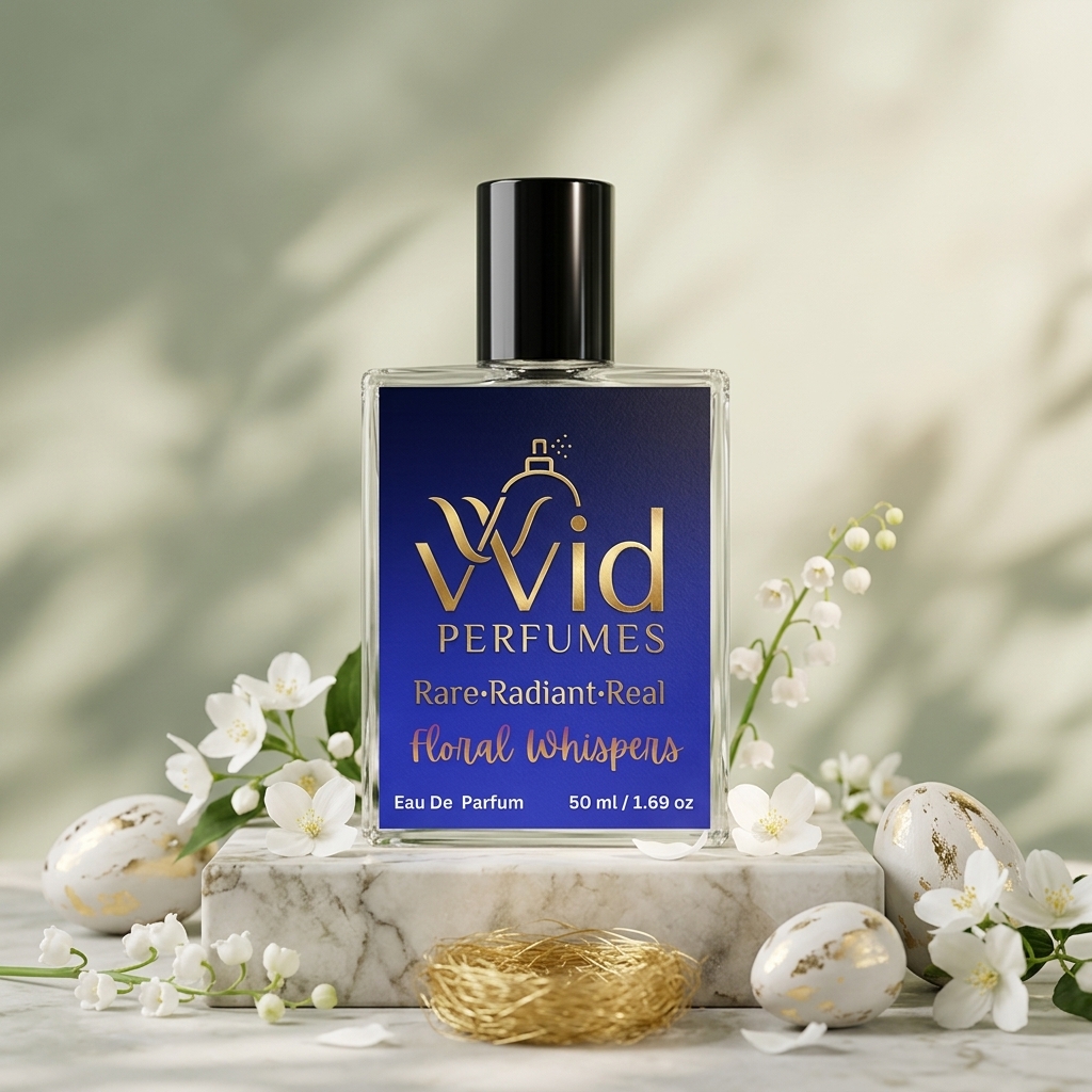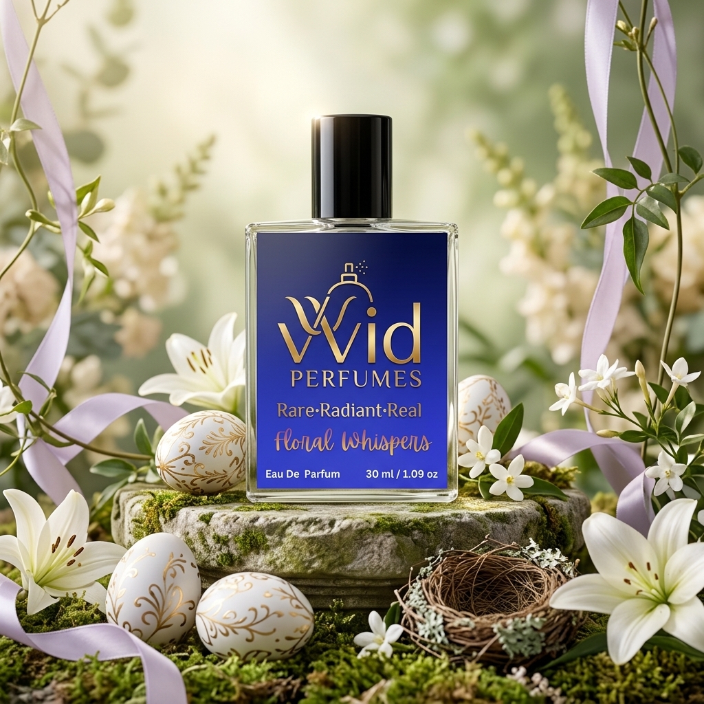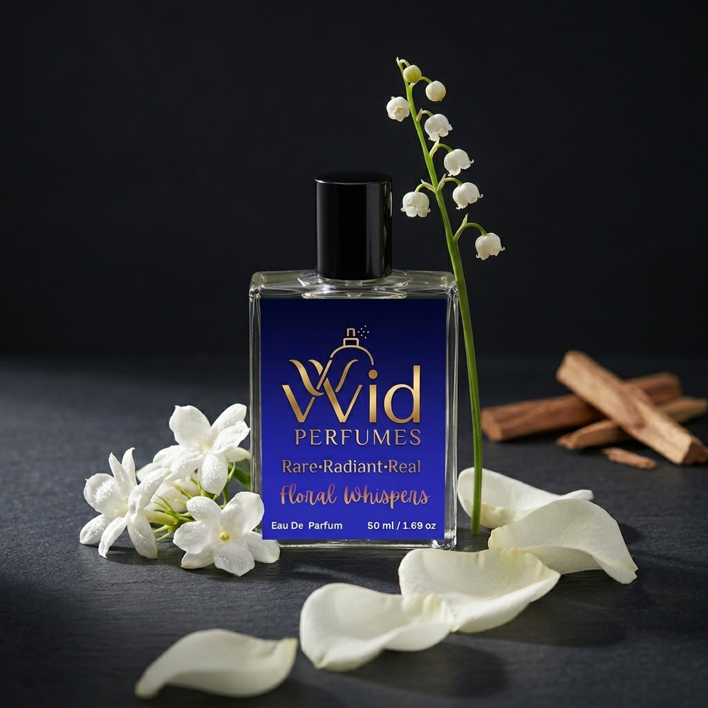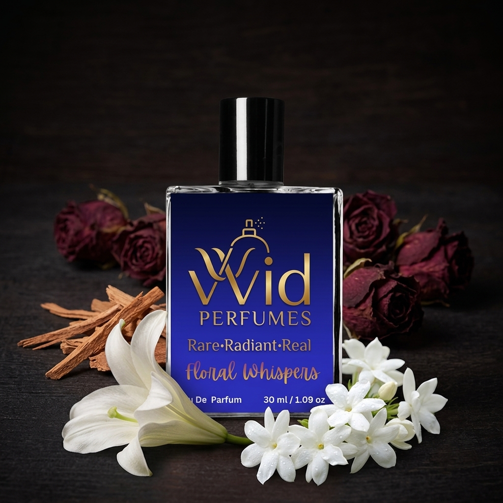 In the base, Floral Whispers settles into a warm and inviting blend of sandalwood and patchouli. The sandalwood provides a creamy, woody richness that complements the floral heart, while the patchouli adds an earthy, grounding element to the scent. This combination ensures the fragrance is not only delicate and light but also long-lasting, with a sensual and comforting finish that lingers on the skin.