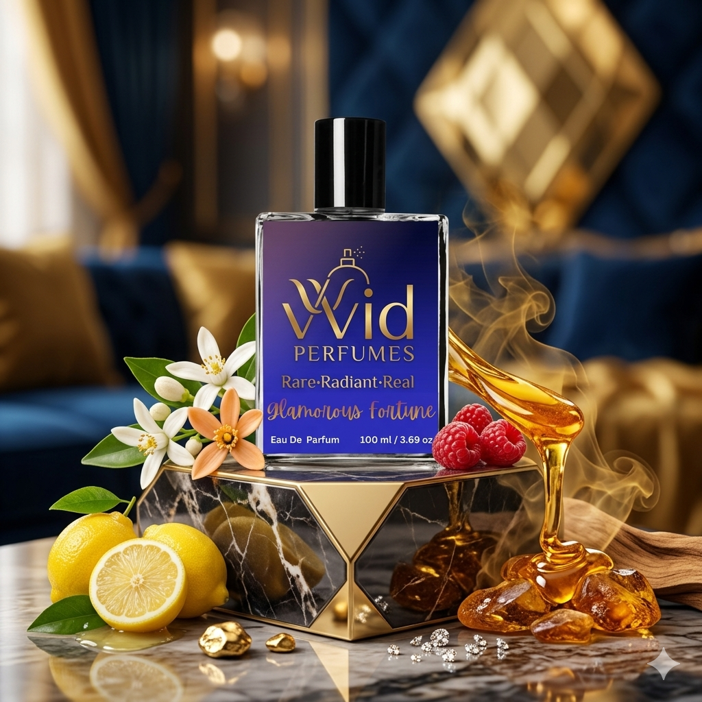 The base of Glamorous Fortune is where the fragrance truly leaves its mark. Warm, decadent notes of honey, patchouli, and amber create a rich and luxurious foundation that lingers on the skin, ensuring a long-lasting, memorable scent experience. The honey adds a sweet, golden warmth, while the patchouli and amber give the fragrance a deep, earthy richness that grounds the vibrant top and heart notes.