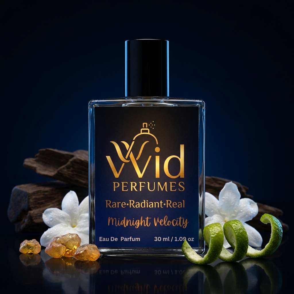 The base of Midnight Velocity anchors the fragrance with deep, woody, and musky notes. Cedarwood, vanilla, and musk work together to create a warm and enduring finish. Cedarwood delivers a robust, earthy tone, evoking the strength and resilience of nature, while vanilla adds a smooth, creamy sweetness that tempers the boldness of the woody notes. The musk brings a sensual, skin-like quality that lingers long after the first spray, leaving a lasting impression of elegance and sophistication.