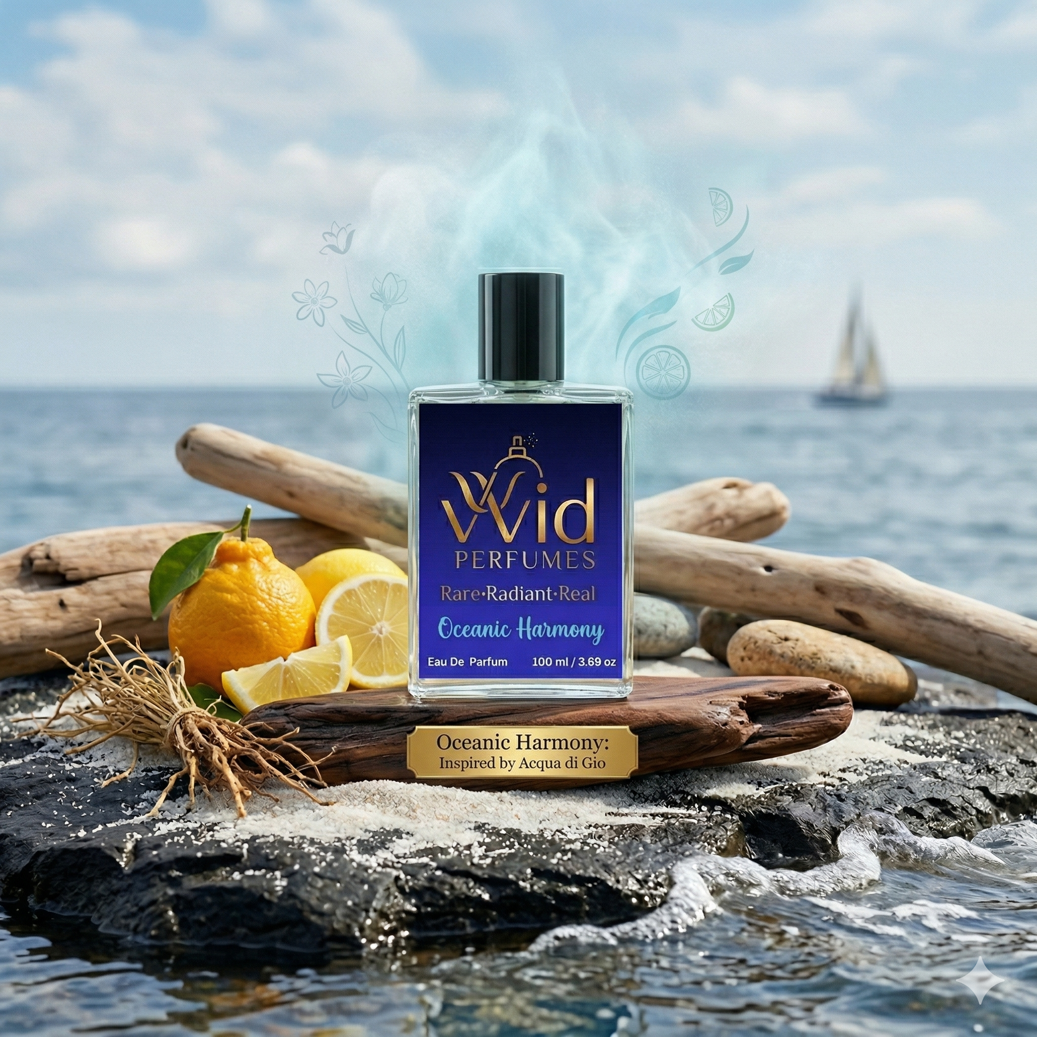 In the base, Oceanic Harmony settles into a warm and grounding blend of cedarwood, patchouli, and musk. These earthy, woody notes anchor the freshness of the fragrance, providing a smooth and lasting finish. Cedarwood delivers a robust and masculine presence, while patchouli adds a subtle richness that deepens the fragrance. Musk provides a sensual, long-lasting trail that lingers on the skin, ensuring that the scent remains noticeable throughout the day. The woody base is the perfect contrast to the light and fresh top and heart notes, balancing the composition and making it versatile enough for both casual and formal occasions.